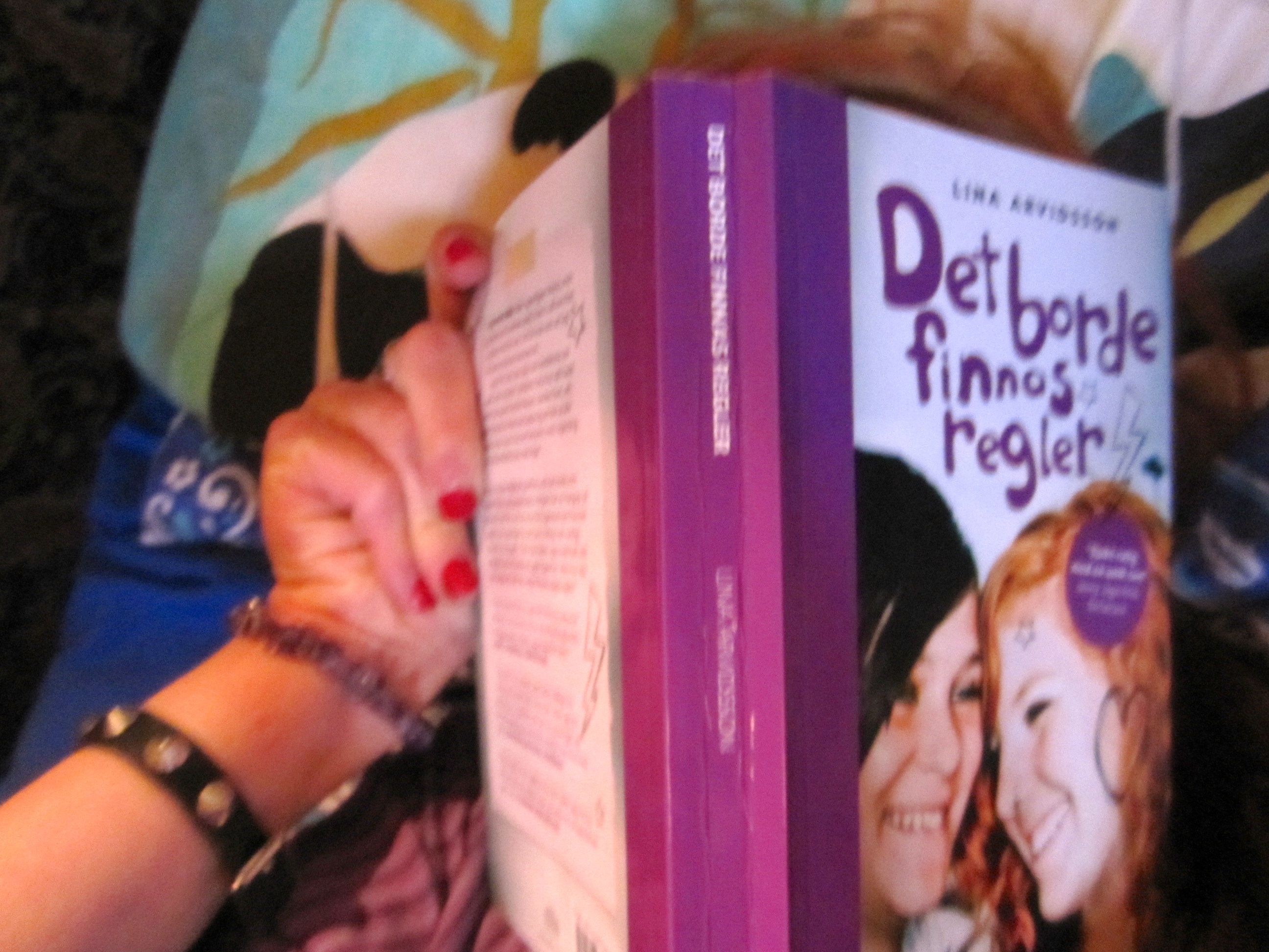 IMG_3032Lina Arvidsson var en av arrangörerna under SM i Poetry Slam – en underhållande MC och färgsprakande poet, men hon är också en fängslande romanförfattare. Jäv! Skulle publiken skrika om det var Poetry Slam. (Det stör tävlingen om konferenciern och poeterna tycker saker om varandra.) Jäv! skriker folk om en recenserar kompisars böcker. Men nu är jag ju inte vän med Lina privat, bara på Facebook. Jag behöver inte skriva en massa bra saker om hennes bok. Jag behöver inte, men jag vill. För Det Borde Finnas Regler är en riktigt bra ungdomsroman som jag sträckläste.