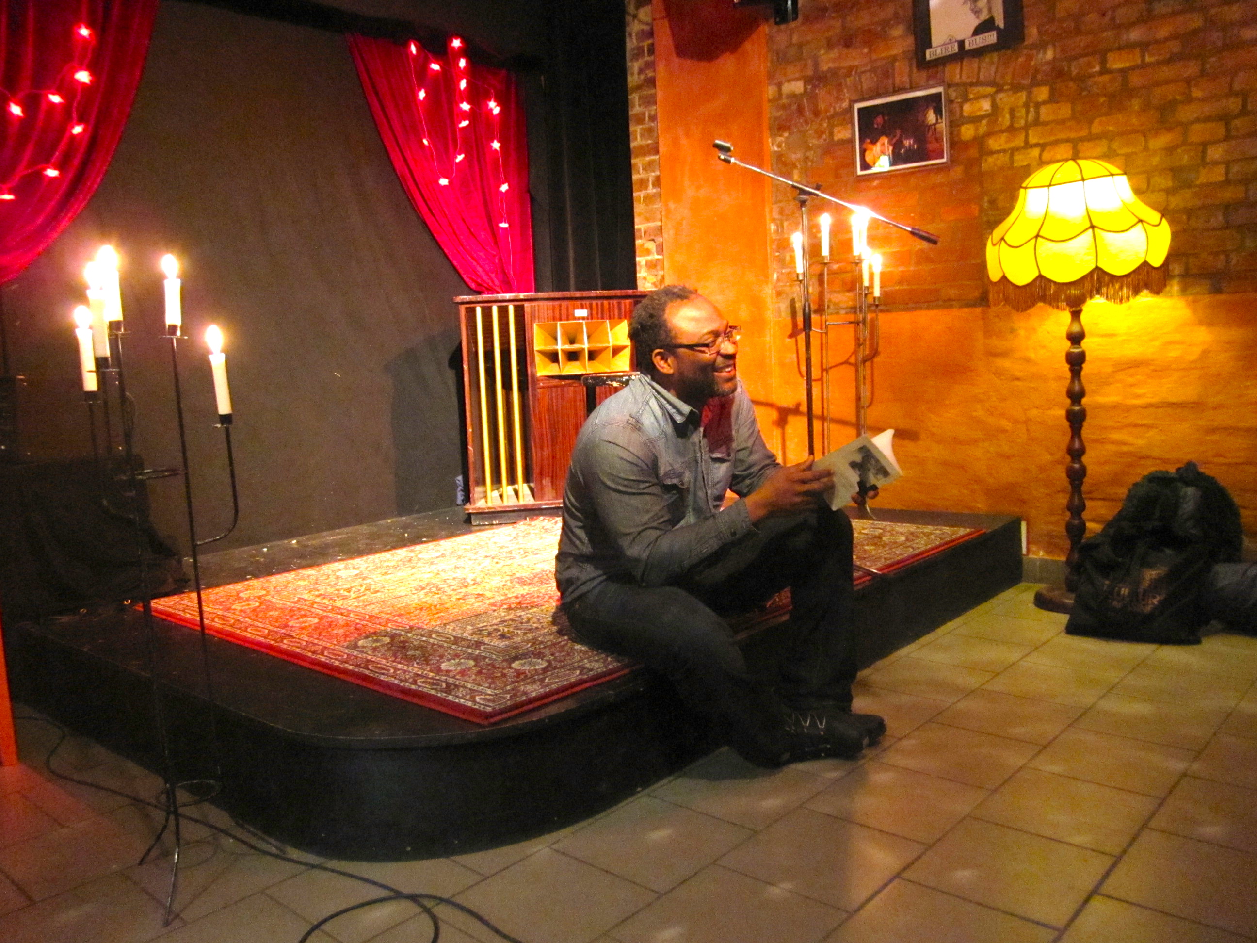 När jag gått av scen avslutade Cletus Nelson Nwadike kvällen på ett mycket fint sätt genom att på ett hypnotiskt vis berätta om sin barndom i Nigeria och han läste även ur den helt fantastiska diktsamlingen En kort svart dikt. Han sa också att det bästa som har hänt är att kvinnorna tog sig in i litteraturen! Vilken man!