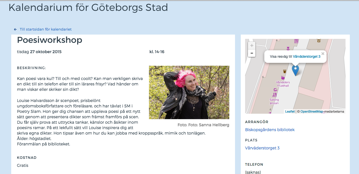 Poesiworkshop för höslovslediga ungdomar på Biskopsgårdens bibliotek Publicerad den oktober 26, 2015 av louisehalvardsson Klicka på bilden så blir den större, eller KLICKA HÄR för att läsa all info Dela detta: Klicka för att dela på X (Öppnas i ett nytt fönster) X Klicka för att dela på Facebook (Öppnas i ett nytt fönster) Facebook Gilla Laddar in … Relaterade