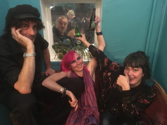 Bild: Från The Soft Revolution of Goth Punk Poetry, föreställningen jag gjorde med Henrik Mimerson och Nadja Itäsaari på Gothenburg Fringe Festival. Vi hade lite #me too-tema innan hela den grejen drog igång och vi skämtade om att ”creepy old men” var våra största fienden och så fick vi till en skål med en random man (som dock inte var creepy) foto: Sanna Holmström