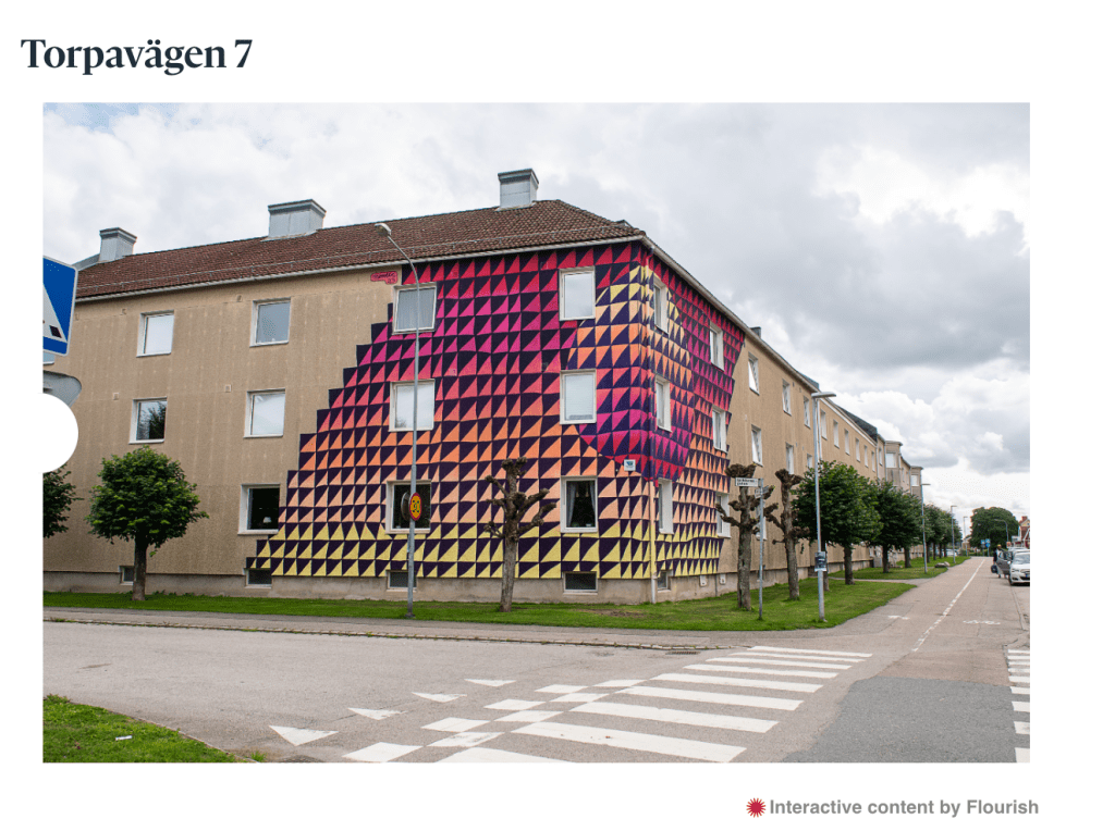 ”Ungdomsyrsel”, skriven som en ekfras på Hilma af Klints kontverk Ynglingaår grupp IV. Dikten tolkades sedan av konstnären Noodls som gjorde väggmålningen på bilden, en del av Arstscape Vänersborg.