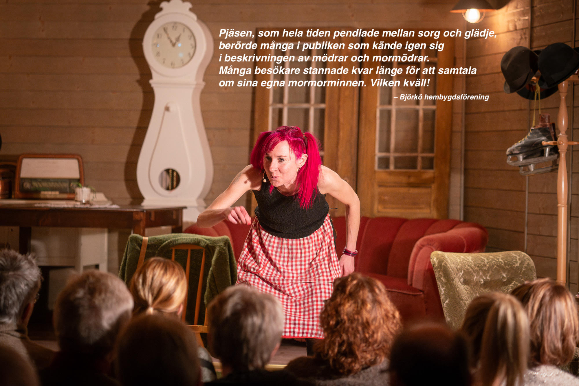 ”Pjäsen, som hela tiden pendlade mellan sorg och glädje, berörde många i publiken som kände igen sig i beskrivningen av mödrar och mormödrar. Många besökare stannade kvar länge för att samtala om sina egna mormorminnen. Vilken kväll!”